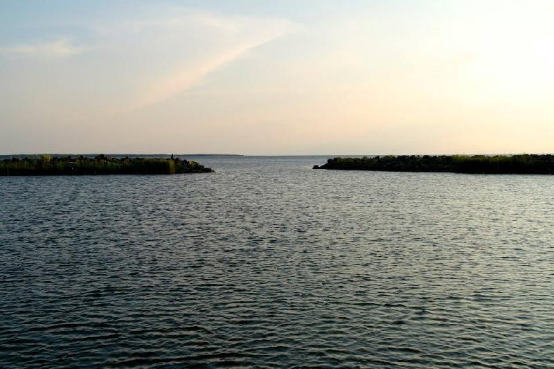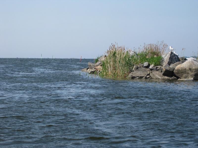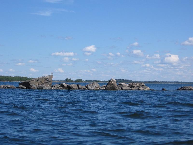 Till havs.